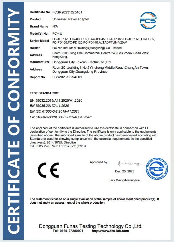 FOXCAN-S741 PD35W Universal Travel Adapter -4 AC Sockets and Four Plug For EU UK AU China Japan Suit for Laptop , Phone Camera