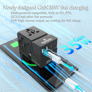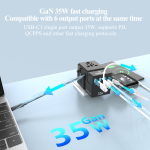 • Name:FOXCAN-T35W PD Fast Charging Universal Travel Adapter with Retractable Type-C Cable and 2 USB-A and 2USB-C