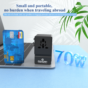 • Name:FOXCAN-T70W GaN Universal Travel Adapter with Built-in Retractable Cable and International Plugs for Global Travel