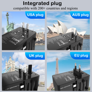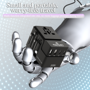 FOXCAN-T100W Multifunctional GaN Travel Adapter Type-C and USB Wall Charger Universal UK/US/EU/AU Plug Compatibility
