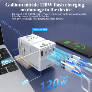 • Name:FOXCAN-T120W GaN 120W Universal Travel Adapter |Worldwide Fast Charger with 2USB and Type-C