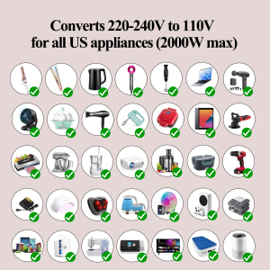 • Usage:This 2000 W power converter supports a wide variety of devices, from mobile phones and laptops to small appliances like electric shavers, toothbrushes, and portable cleaning instruments. It also works seamlessly with portable breathing machines, and DVD players. Designed for on-the-go use, it’s an ideal power solution for frequent travelers, business professionals, and anyone needing reliable, compact power access while traveling.