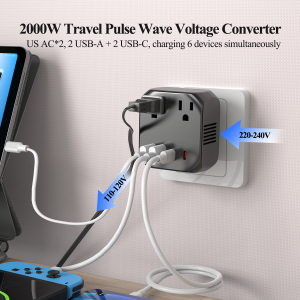 • Name:FOXCAN_S750 2000W Voltage Converter and Adapter Combo 220V to 110V for Eurpoen Travel with 2USB-C and 2USB-A Suit for Hair Dryer
