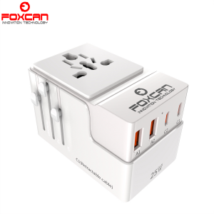 FOXCAN-T25 GaN PD25W Universal Travel Adapter with 2USB-C+2USB-A Charger US Europe Australia Britain Plug Adapter