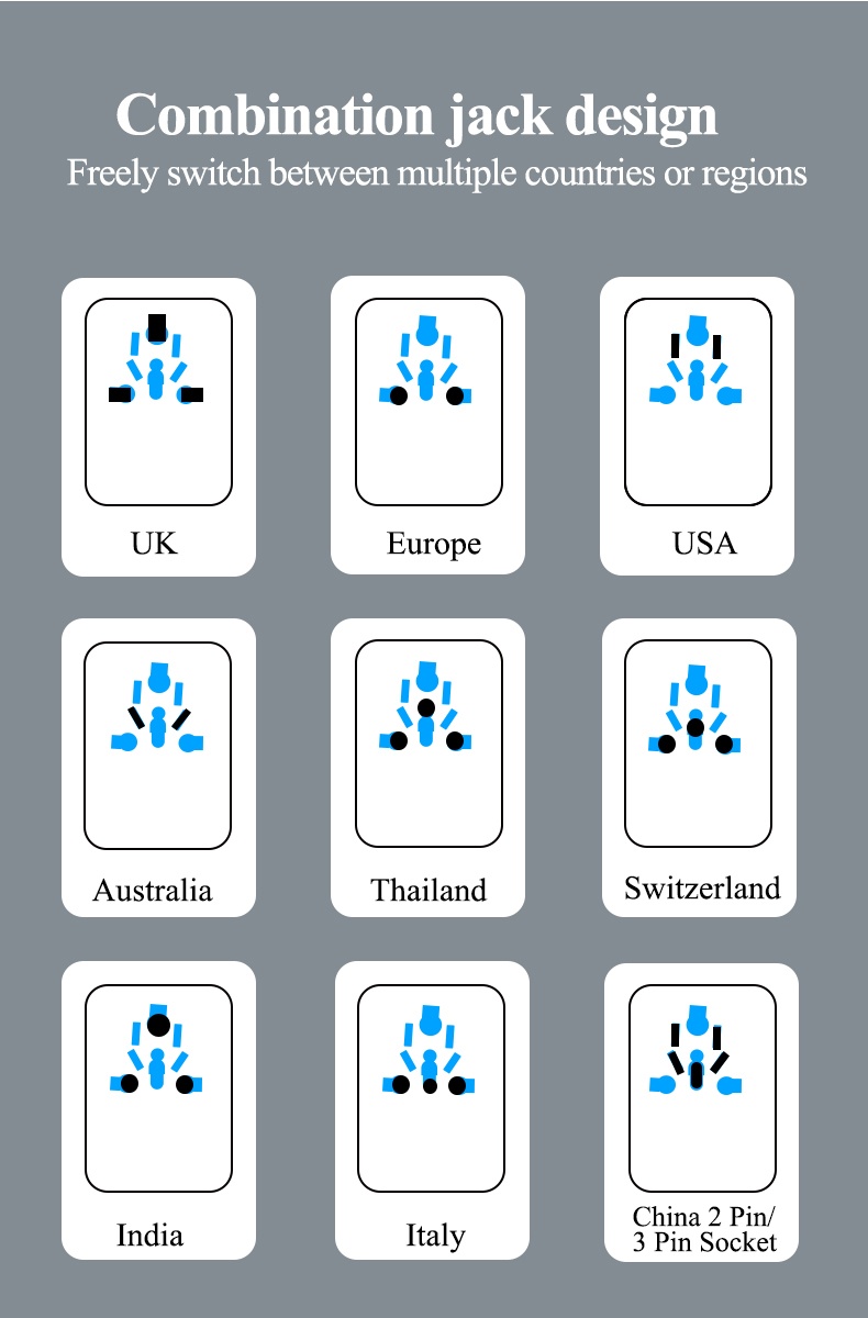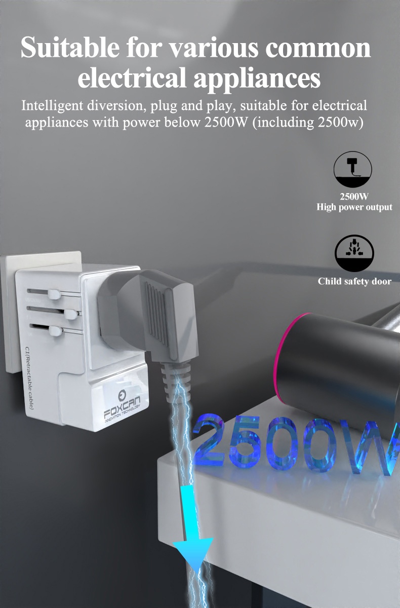 It can charging 5 devices at the same time,and it can use for the high power hair dryer with overheat protection,over-current protection,overload protection,short circuit protection.